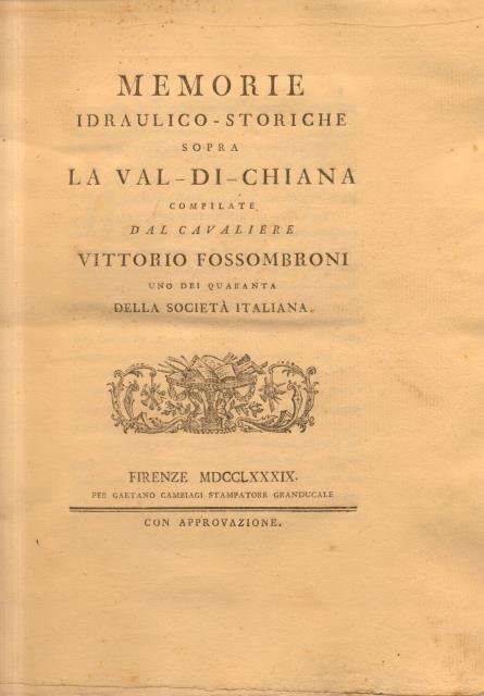 MEMORIE IDRAULICO - STORICHE SOPRA LA VAL DI CHIANA. Compilate dal cavaliere Vittorio Fossombroni, uno dei Quaranta della Società Italiana.
