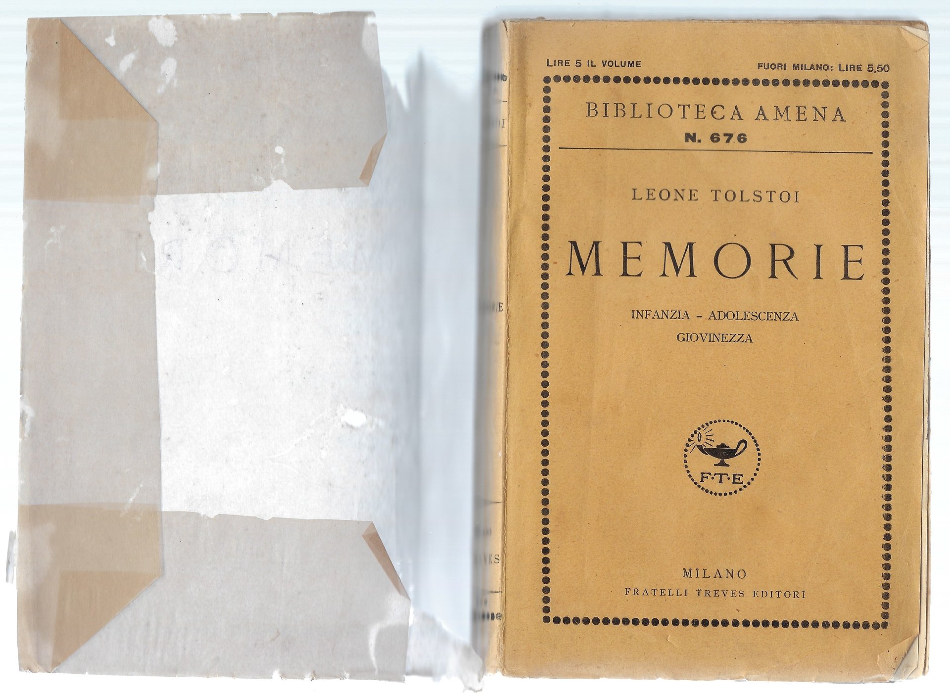 Sovraccoperta artigianale piuttosto rovinata.