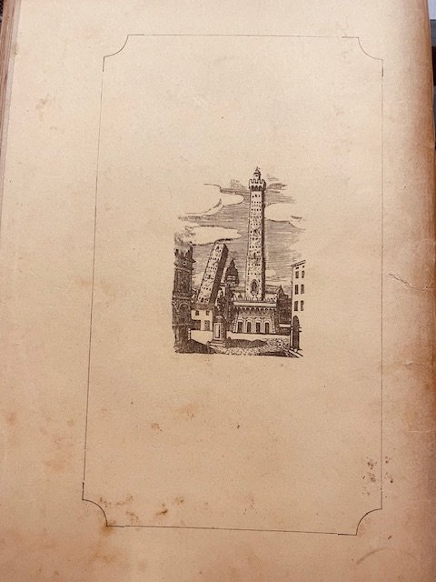 pag. 119-(5), incisione della Madonna del Suffragio con il Bambino Gesù in antiporta incisione delle due torri nel retro della copertina.,
