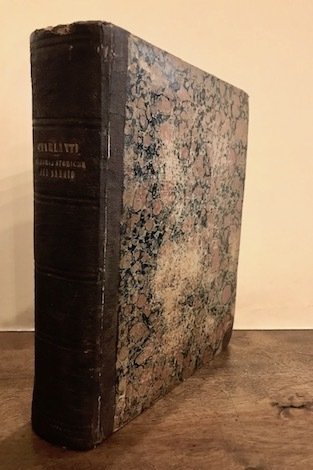4to (cm. 26), cinque voll. rilegati in uno, 96 pp.; 176 pp., 1 c.nn.; 142 pp. (i.e. 242), 1 c.nn.; 233(1) pp.; 206 pp. Legatura coeva in mz. tela con titolo impresso in oro al ds. (carte dei piatti leggermente usurate). Dedica in bella grafia sulla prima carta bianca. Fioriture sparse, ma esemplare in più che buono stato di conservazione. Platneriana (p. 244) possiede l’edizione originale pubblicata ad Isernia nel 1664. Vinciana (n. 977 in nota) menziona questa ristampa del 1823 descrivendola in quattro volumi anziché cinque. Non in Lozzi.