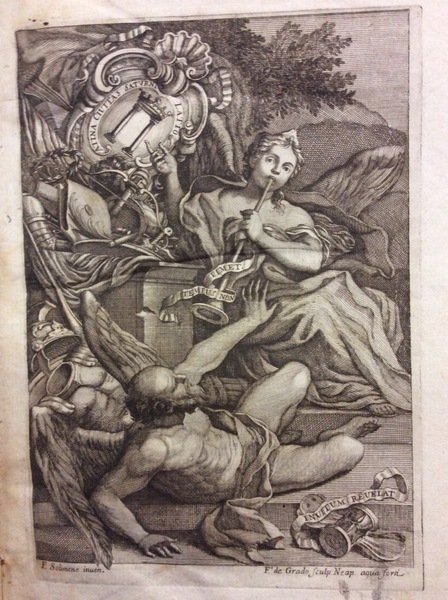 In-8 p. (mm. 223x165), p. pergamena coeva, titolo ms. al dorso, pp. (8),330,(16), con bellissima antiporta figurata, inc. all'acquaforte da F. de Grado su disegno di F. Solimene, con piccolo stemma della città; 1 figura a p. pagina inc. su legno; grande stemma inc. in rame alla dedica a Francesco Gallio, Duca d'Alvito.. ; ornato da pregevoli testatine, grandi capilett. e finali inc. su legno. "Edizione originale".Cfr. Fera / Morlicchio Bibl. Regno di Napoli e delle due Sicilie, II, 1764: E' quanto di meglio e più completo oggi si abbia per lo studio della storia di questo comune, allora compreso nella provincia di Caserta (ora in quello di Frosinone). Si contengono interessanti noizie sui primi popoli dell'Italia, sul territorio, i fiumi, le guerre, la dominazione Longobarda subita dalle città di Atina. Il maggior pregio dell'opera si riscontra nella descrizione di molti marmi antichi e nei capitoli degli uomini illustri che governarono Atina. Rara ed importante settecentina.Cfr. anche Minieri Riccio, p. 349 - Coleti, p. 10: Atina, nella Terra di Lavoro.Macchia margin. all'antip.; con qualche fiorit. e arross. e, a partire dalla p. 200, intercalato da bruniture anche pesanti per la qualità della carta. .