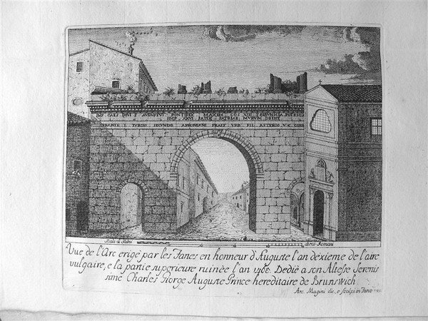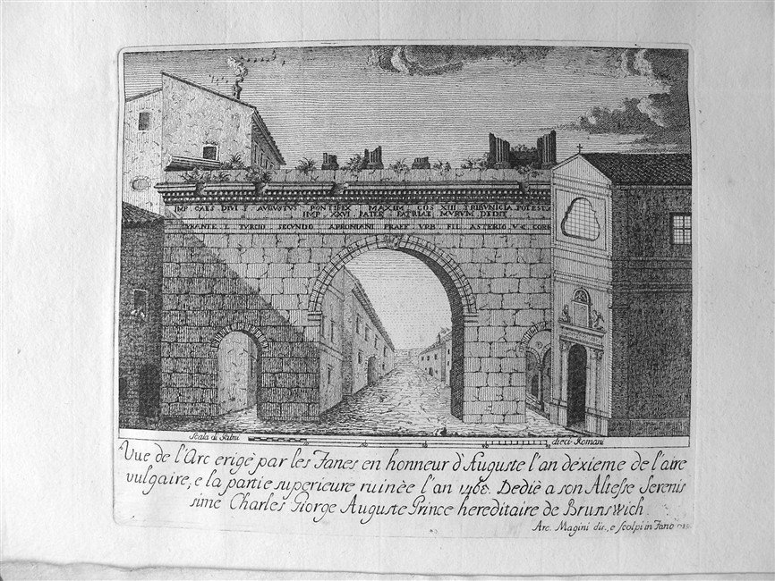 2 gr. voll. in folio, pp. XXIII, 472; (4), 356, CXIX, bella leg. cart. rust. coevo con tit. mss al d. Tagli spruzzati. Con una tav. in rame ripiegata al primo front. raff. l'arco romano di Fano dis. e inc. da A. Magini. Lozzi 1560. Biblioteca Picena, p. 102. Splendido e marginoso esempl. [223]