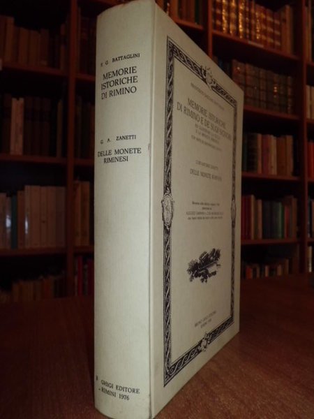 Francesco, Gaetano Battaglini. Rimini, Bruno Ghigi Editore, 1976. Memorie istoriche di Rimino e de' suoi signori ad illustrare la zecca e la moneta riminese con note di Guid' Antonio Zanetti delle monete riminesi. Ristampa delle edizioni originali (1789) presentata da Augusto Campana e Luigi Michelini Tocci con nuovo indice dei nomi e delle cose notevoli. In - 8°, tela. 447, (96 pp. indice) con illustrazioni in tavole f.t. Come nuovo. Neg. Mob. 3