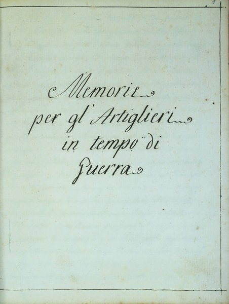 MEMORIE PER GL'ARTIGLIERI IN TEMPO DI GUERRA. - Manoscritto di autore anonimo.