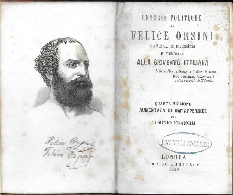 Memorie politiche, scritte da lui medesimo e dedicate alla gioventù Italiana. Quarta edizione aumentata di un'appendice per Ausonio Franchi.