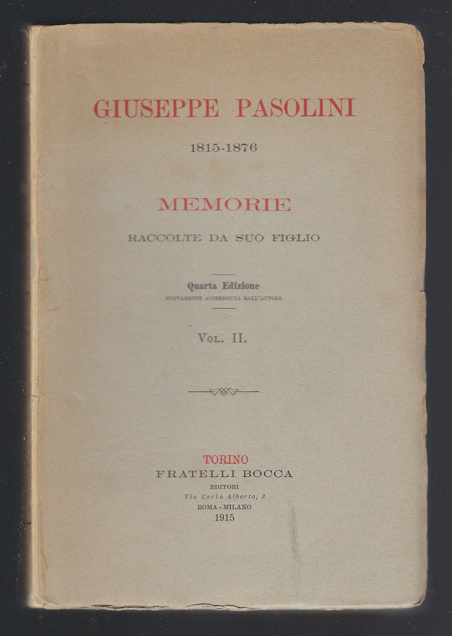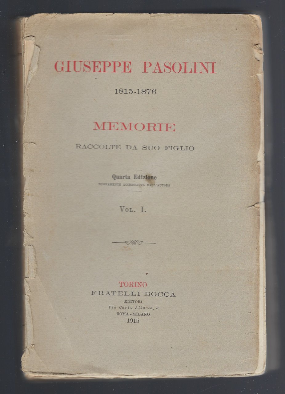 Giuseppe Pasolini 1815 - 1876 Memorie raccolte da suo figlio. quarta edizione
