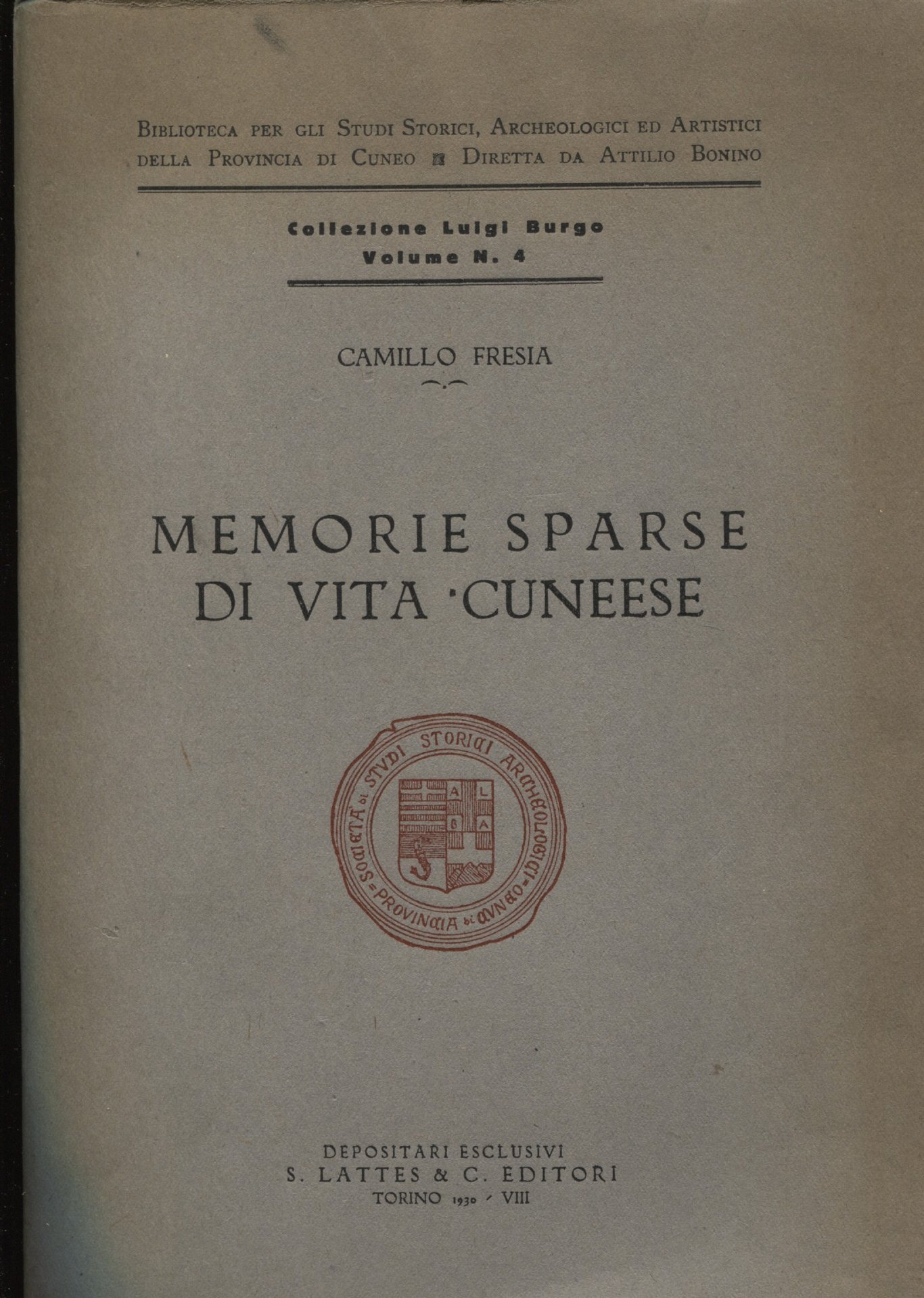 In 8, pp. 195. Brossura. Tavole fuori testo di cui alcune ripiegate. Biblioteca per gli studi storici, archeologici ed artistici per la provincia di Cuneo. Collezione Luigi Burgo ; 4 Molto buono (Very Good) .