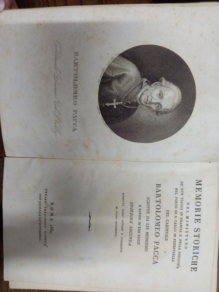 Memorie storiche del ministero, de’ due viaggi in Francia e della prigionia nel Forte di San Carlo in Fenestrelle del Card. Bartolomeo Pacca. Scritte da lui medesimo e divise in tre parti. Roma, Presso Francesco Bourliè, 1830.