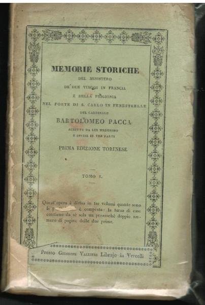 Memorie storiche del ministero dè due viaggi in Francia e della prigionia nel Forte di San Carlo in Fenestrelle.