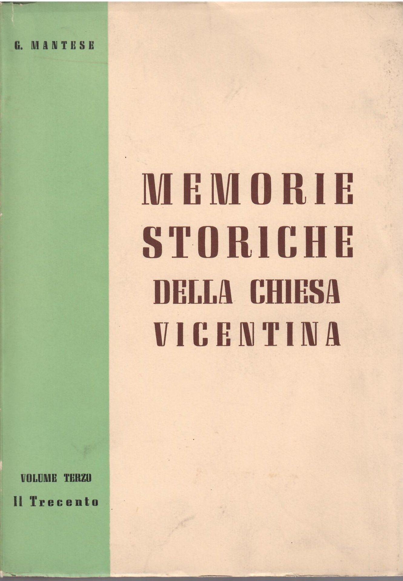 MEMORIE STORICHE DELLA CHIESA VICENTINA - VOL. TERZO - PARTE PRIMA - IL TRECENTO
