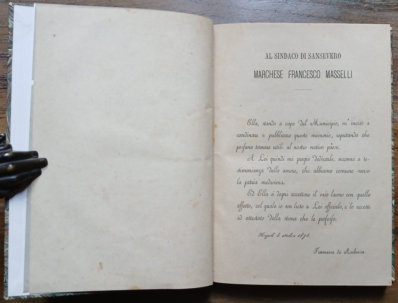 (Puglia; Storia locale; Provincia di Foggia; San Severo) In 16° grande (cm 18,5 x 13), legatura moderna in mezza tela verde, al dorso tassello in pelle con titoli in oro, carta marmorizzata ai piatti, conservate le copertine della brossura editoriale, pp. VIII,218. Ottimo stato di conservazione. Edizione originale.