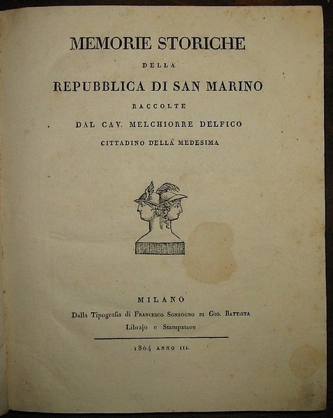 Memorie storiche della Repubblica di San Marino raccolte dal cav. Melchiorre Delfico cittadino della medesima