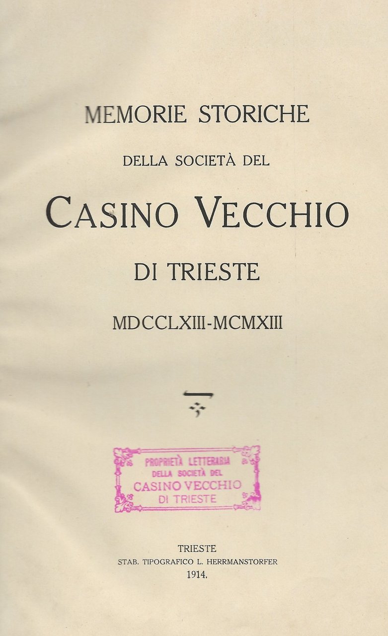 Memorie storiche della società del Casino Vecchio di Trieste MDCCLXIII-MCMXIII