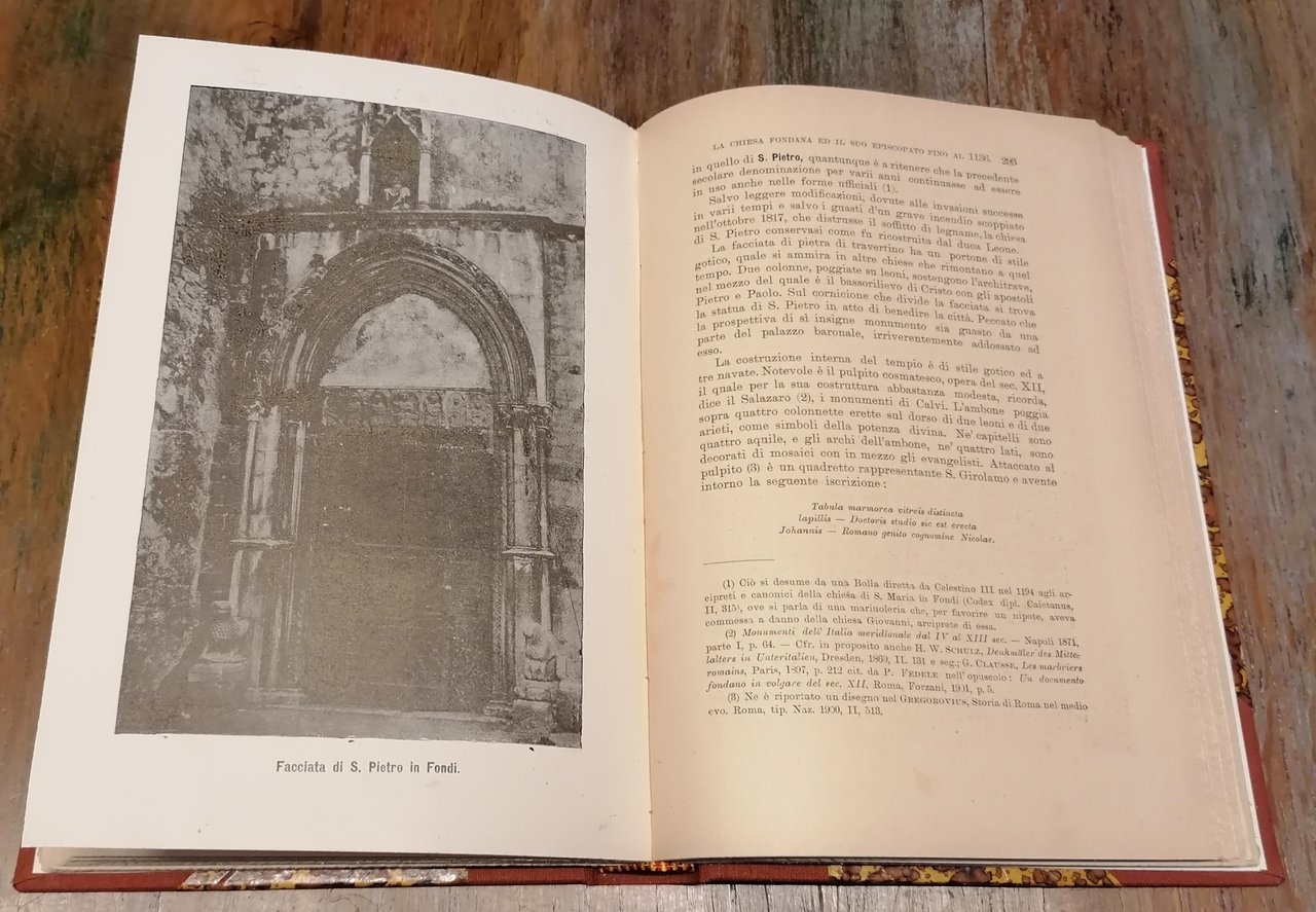 (Lazio; Provincia di Latina; Storia locale) In 8° legatura moderna in mezza tela ocra con punte, al dorso tassello in pelle verde con titoli in oro, carta marmorizzata ai piatti, conservate le copertine della brossura editoriale, pp. VII,(1),480, con 24 illustrazioni in rame e fotozincotipia. Dedica autografa del Prof. Bruto Amante al recto del foglio di guardia anteriore. Un errore del legatore nell'impressione del titolo al dorso, peraltro ottimo stato di conservazione. Edizione originale.