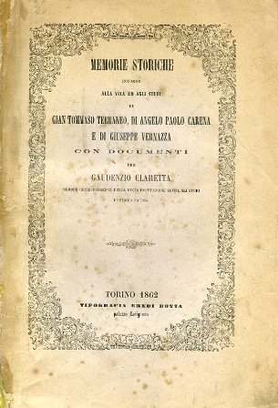 Memorie storiche intorno alla vita ed agli studi di Gian Tommaso Terraneo, di Angelo Paolo Carena e di Giuseppe Vernazza con documenti