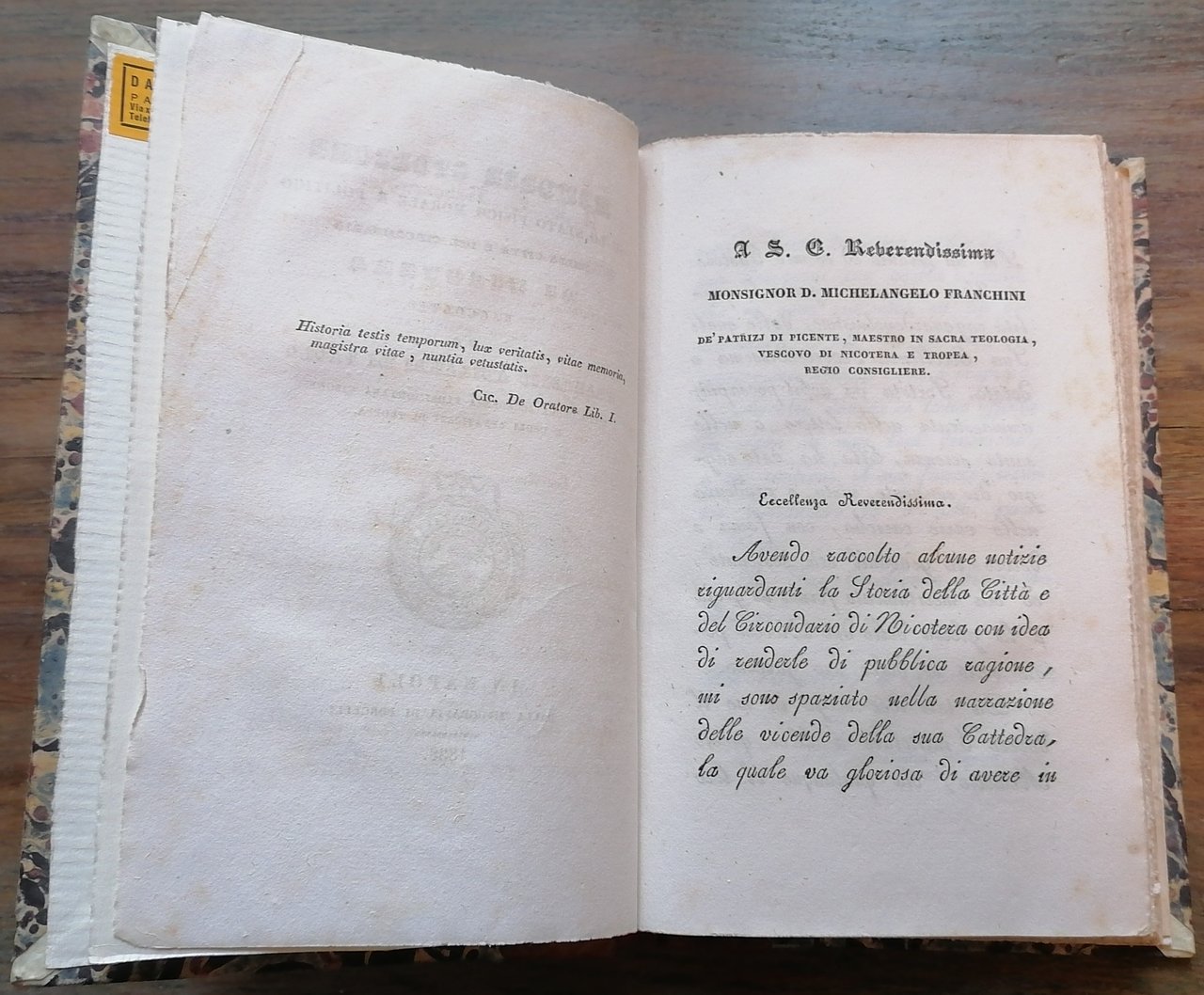 (Calabria; Nicotera; Limbadi; Joppolo; Storia locale) In 8°, legatura in mezza pelle ocra, dorso a 5 nervi con impressioni in oro e doppio tassello con titoli dorati, pp. 233,(1). Ottimo stato di conservazione. Edizione originale.