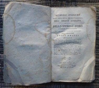 MEMORIE STORICHE SUL'ANTICHITA', ED ECCELLENZA DELL'ORDINE AUREATO OSSIA DELLO SPERONE D'ORO E DELL'ORDINESCRITTE E PRESENTATEALL'IMPARZIAL PUBBLICO GIUDIZIO DAL CAVALIERE LUIGI ANGELI IMOLESE - PRIMA EDIZIONE 1812