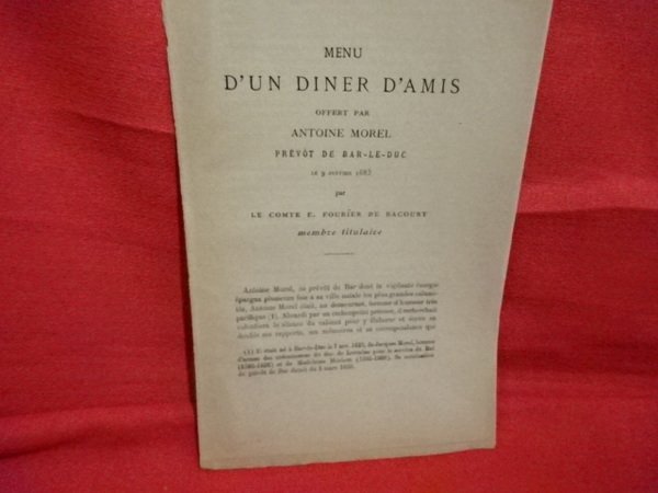 Menu d'un diner d'Amis offert par Antoine Morel, prévôt de Bar-le-Duc, le 9 janvier 1683, pagination 259 à 264.