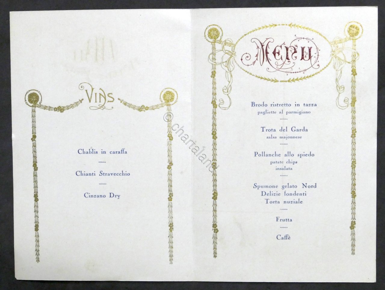 Menù nozze Tognana - Sella - Hotel du Nord - Milano 1932