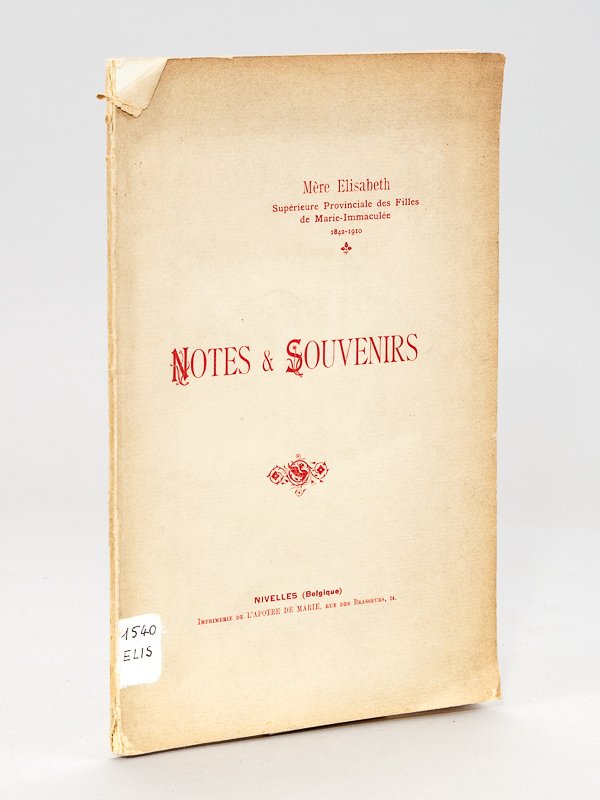 1 vol. in-8 br., Nivelles (Belgique), Imprimerie de l'Apôtre de Marie, s.d. (circa 1910), 64 pp. Intéressant ouvrage évoquant notamment l'installation en Corse des Filles de Marie (communauté d'Olmeto, pensionnat d'Ajaccio ou établissement de Nuoro). Etat satisfaisant (ancienne cote de bibliothèque au dos en queue, dos frotté en tête, bon état par ailleurs) Peu courant