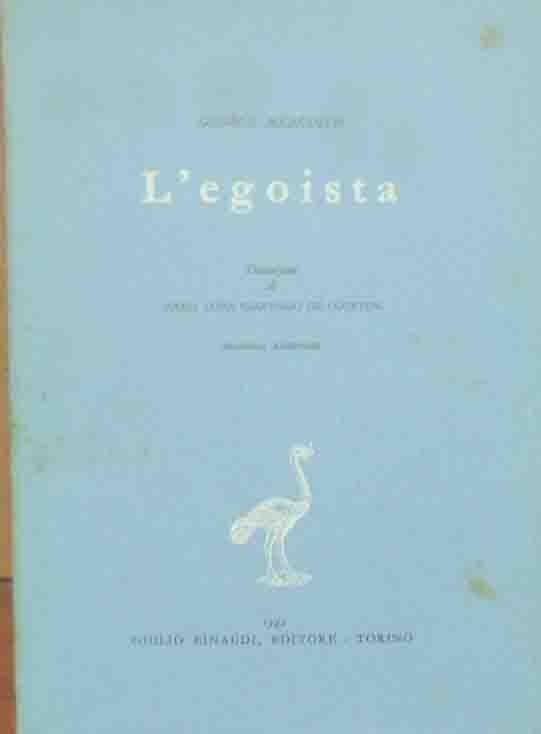 George Meredith, L’egoista, traduzione di Maria Luisa Giartosio de Courten, Giulio Einaudi Editore, Torino 1942, seconda ed., pp. XIII, 699, ill. con ritratto b.n. dell’autore applicato in antiporta, cm 22, br. ed. Collana Narratori stranieri tradotti, n. 13. Minime fioriture, carta e dorso uniformemente bruniti, per il resto ben conservato. Intonso.