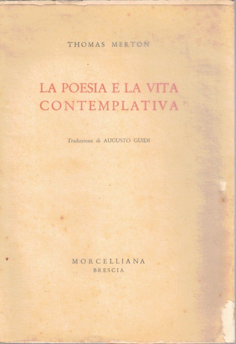 Thomas Merton, La poesia e la vita contemplativa, traduzione di Augusto Guidi, Morcelliana, Brescia 1950, pp. 31, cm 19, br. ed. con alette e velina di protezione. Collana Fuochi. Alcune piccole mancanze alla velina, minime fioriture, per il resto ottimo esemplare. Intonso.