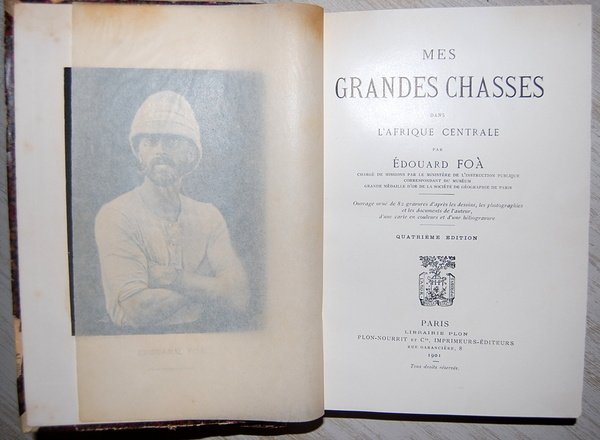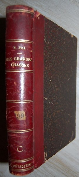 In 8°; (4), XI, (1), 384 pp. e 26 c. di tav. fuori testo compreso il bel ritratto di Foa in Eliografia al frontespizio e la carta più volte ripiegata. Bella legatura coeva in mezza pelle rissa con titolo, filetto e nome di antica proprietà nobiliare impressi in oro al dorso. Piatti foderati con carta marmorizzata coeva. Tagli leggermente spruzzati in azzurro (qualche piccola strofinatura). All'interno in ottime condizioni di conservazione. Quarta edizione, ma la più completa, di uno delle più celebri relazioni di caccia africana scritta dal noto geografo e cacciatore marsigliese di origini ebraiche Aron Fortune Emmanuel Georges Edouard Foa. Nel 1891 venne inviato per conto del governo francese in missione esplorativa nell'Africa sub sahariana. Atterrato a Cape Town, Foà si diresse prima verso il Transvaal . Quindi, scopre la grande caccia ai coccodrilli di fiume passione che lo tenne fermo per alcuni mesi. Con una carovana di servitori e facchini, sembra fosse composta da circa 380 persone, l'esploratore si mise in cammino per raggiungere lo Zambesi , lungo il fiume Sabi. Dopo aver passato l'Head e le gole del Kébrabassa la colonna si inoltra nell'Africa centrale, tra le montagne del Tchiouta. Fu il primo a raggiungere il lago Nyasa e le sorgenti dello Zambesi. Nel suo tragitto uccise un'enorme quantità di animali molti dei quali andarono ad ingrossare le collezioni pubbliche francesi. Si racconta che con una pistola in due anni uccise più di 30 elefanti. Entrò in contatto anche con la tribù cannibale dell'Wanyambezi. Edizione in bella legatura e all'interno in ottime condizioni di conservazione. Bibl.: Thiébaud p405 et Numa Broc I, p143.