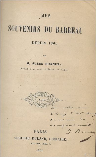 Mes Souvenirs Au Barreau Depuis 1804 (Sciences Sociales) *** SIGNE Jules Bonnet.