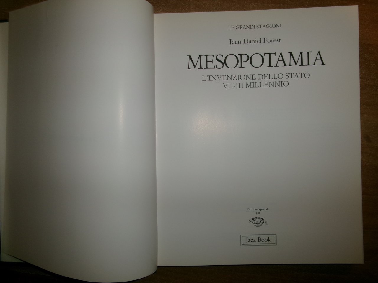 JEAN-DANIEL FOREST. Milano, Edizione speciale per Jaca Book, 1996. MESOPOTAMIA L' invenzione dello Stato VII-III Millennio. In-4°, tela edit. bleu con sovracopertina ill. a col. 272 pp. con numerose illustrazioni a colori e in bianco e nero anche a piena pagina. Ottimo stato. Uff. C - III - 3 - 2