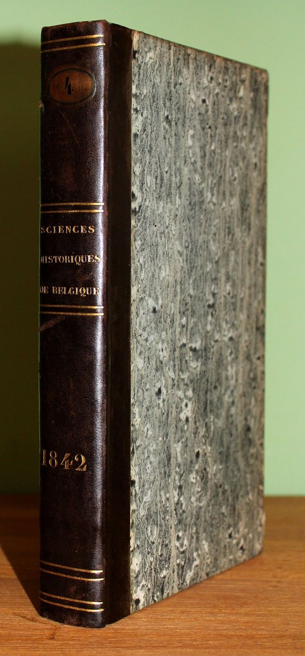 In 8°, pp. 508. Con 15 tavole fuori testo. Mezza pelle dell'epoca con titoli e filetti oro sul dorso. Tagli puntinati azzurri. Fra i vari testi si segnala: WAUTERS, Alphonse. La maison du roi ou Maison du Pain. - HELBIG, H. Listes chronologiques des anciennes impressions de Mayence avec date. - RICHARD, père. Parallele des juifs qui ont crucifié J. C. leur messie et des françois qui ont guillotiné louis XVI leur roi. - SAINT-GENOIS, Jules de. Sceaux des métiers de Bruges.