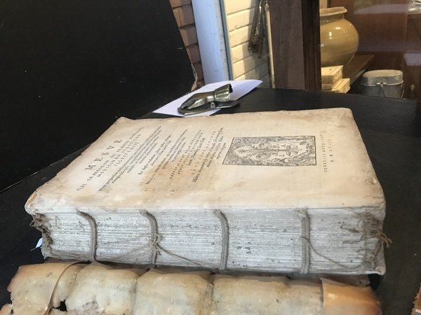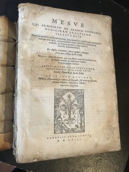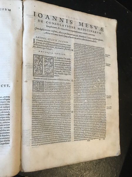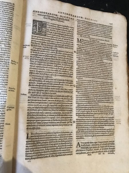 Un volume in folio (cm. 32,3), in una coperta di antica legatura in Piena Pergamena molle, di dimensioni leggermente inferiori; cc. 19 (di 20), 172, 271 (di 309). Vignetta al front. e numerosi capilett. grandi e piccoli, in xilografi, testo su due colonne, talvolta in caratteri e corpo diversi, ampi margini. Ombreggiature e fori di tarli ai margini del front. e dell'ultima carta. Lavori di tarli a due quaderni, per lo più ai margini, che non toccano il testo. Per il resto, le carte sono fresche e con testo nitidamente impresso. Mancano la carta 17 le ultime 33 carte. Difetti accettabili per la rarità dell'opera. Manca all'Adams, al BM STC ed a Olschki, Choix, che cita numerose altre opere dell'autore. Edit 16 CNCE 27238.