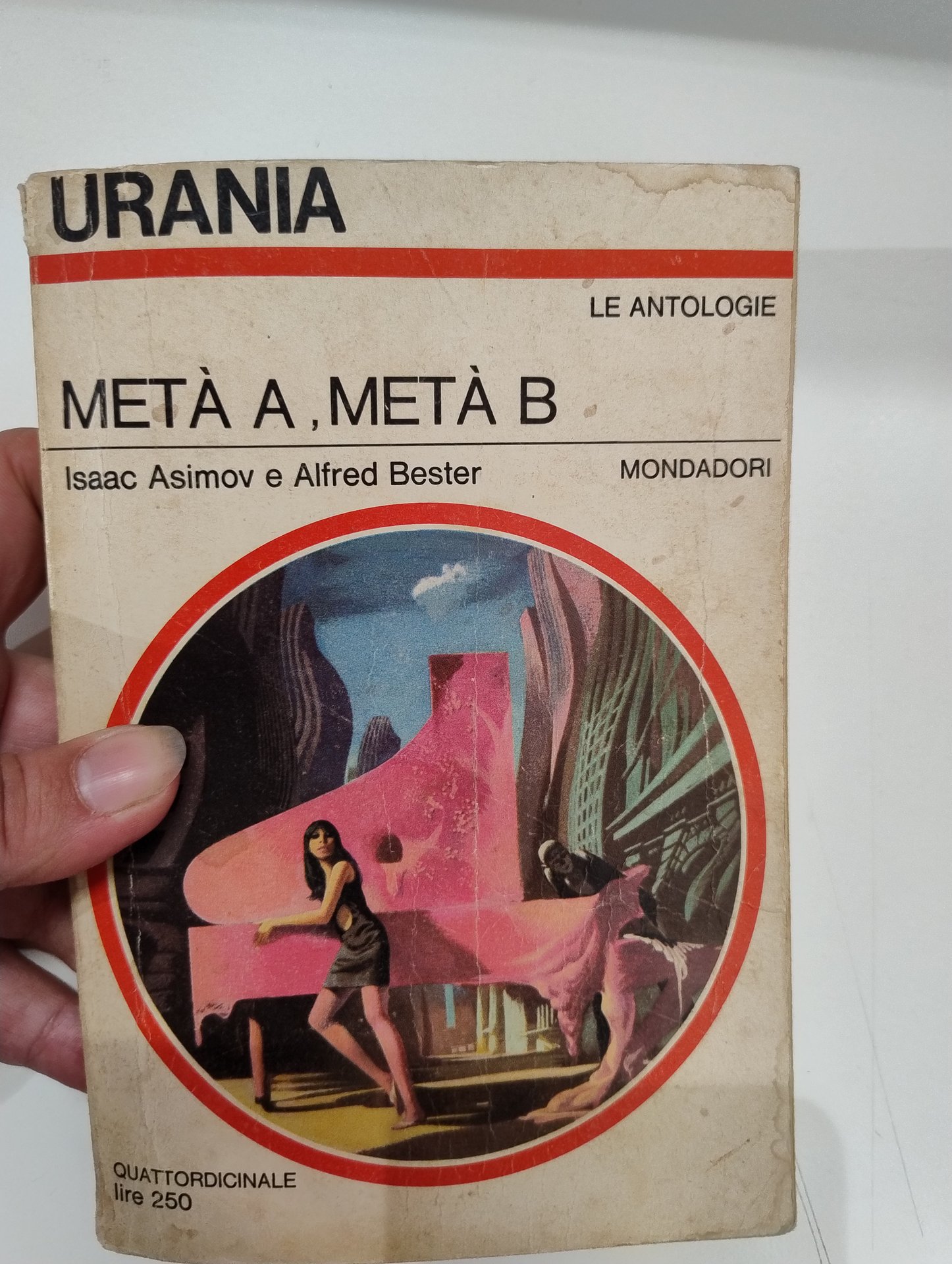 13x19, brossura, pp. 166, buone condizioni con usura e fioriture. n. 469 della collana Urania. Contiene, di Asimov: La palla da biliardo, Polvere di morte, Sally. Di Bester: Il compensatore, L'uomo che uccise Maometto, Due nella metropoli.