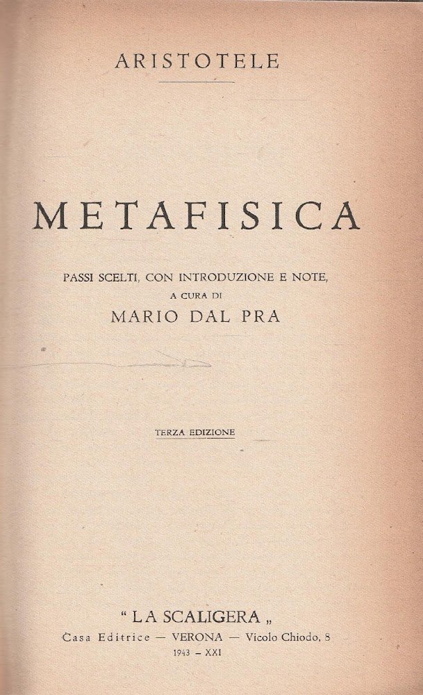 Metafisica. Passi scelti, con introduzione e note a cura di Mario Dal Pra