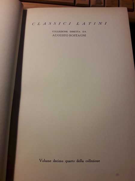 A Cura: Giuseppe Augello . Pagine: 385 . Formato: 8° . Rilegatura: Cartonato blu con dorsi con fregi in oro su tasselli rossi . Stato: Buono . Collana: Classici latini 14 .