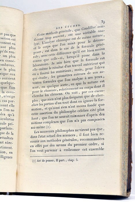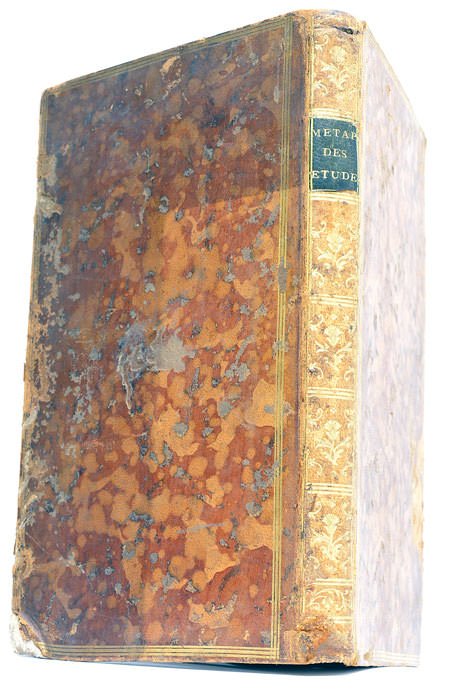 2 feuillets. 170 pages. (20x12 Cm). Pleine basane marbrée. Triple filet doré encadrant les plats. Dos lisse orné. Epidermures sur les plats. Coins et coiffes émoussés. Petits manques. Intérieur en bon état. Ouvrage du savant littérateur et mathématicien savoyard Georges Marie Raymond, dans lequel il discute les conceptions philosophiques sur lesquelles étaient basées les méthodes pédagogiques. L’auteur avait été professeur d’histoire à l’Ecole Centrale du Mont-Blanc et professeur de mathématiques à Genève puis à Chambéry.