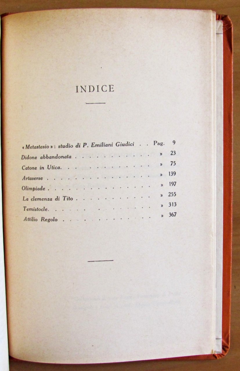 METASTASIO - DRAMMI SCELTI - Collana CLASSICI ITALIANI, serie I vol. XX.