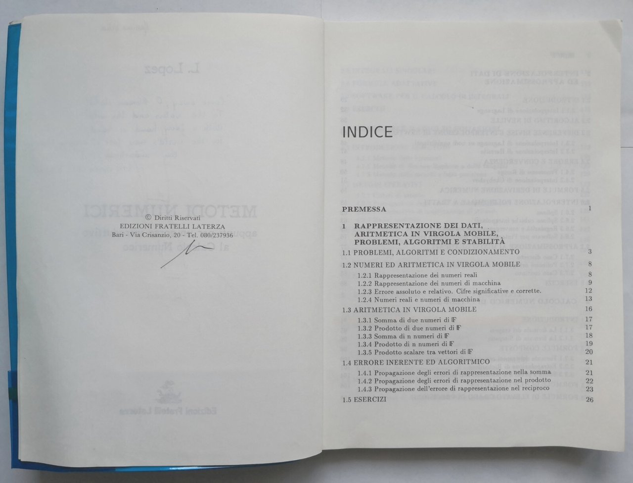METODI NUMERICI di Lopez 1993 Laterza appunti per un corso introduttivo calcolo
