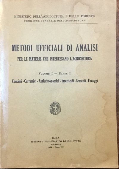 Metodi ufficiali di analisi per le materie che interessano l’agricoltura. Volume I - Parte I Concimi-Correttivi-Anticrittogamici-Insetticidi-Sementi-Foraggi