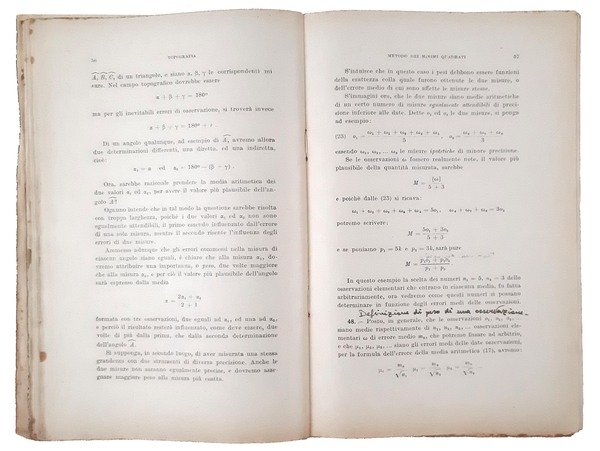 Metodo dei minimi quadrati per la compensazione degli errori di osservazione con applicazioni alla topografia ed alla geodesia. Seconda edizione.