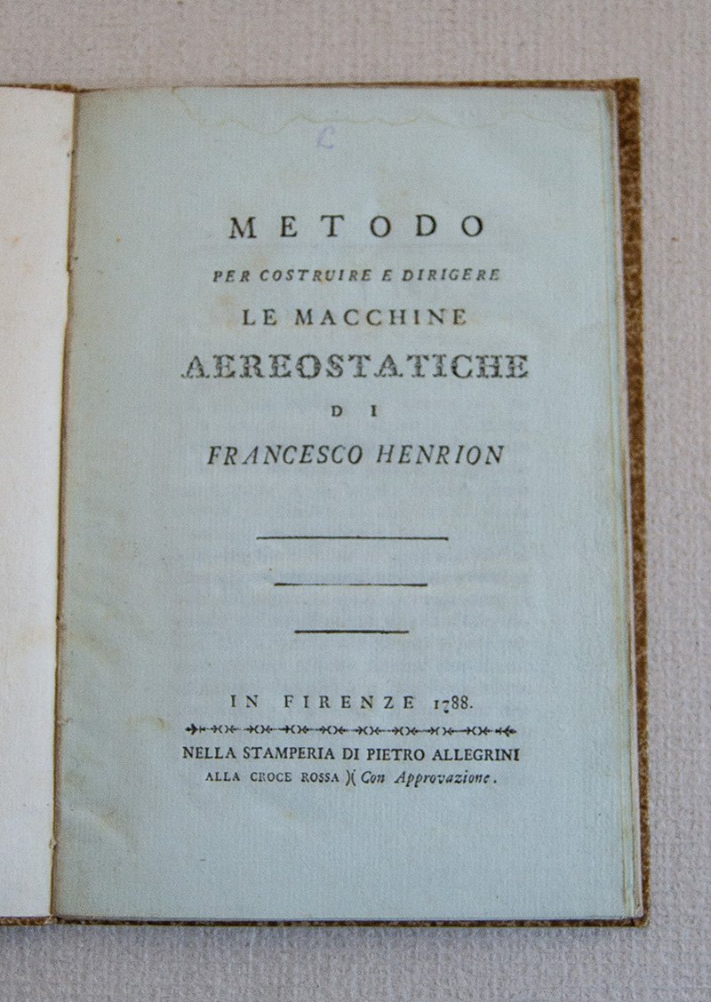 Metodo per costruire e dirigere le macchine aerostatiche. Firenze: Stamperia di Pietro Allegrini, 1788