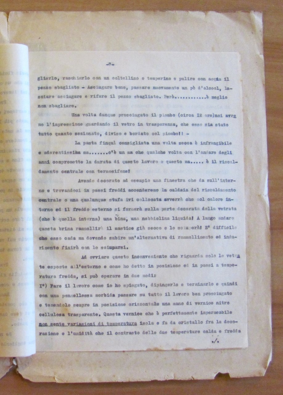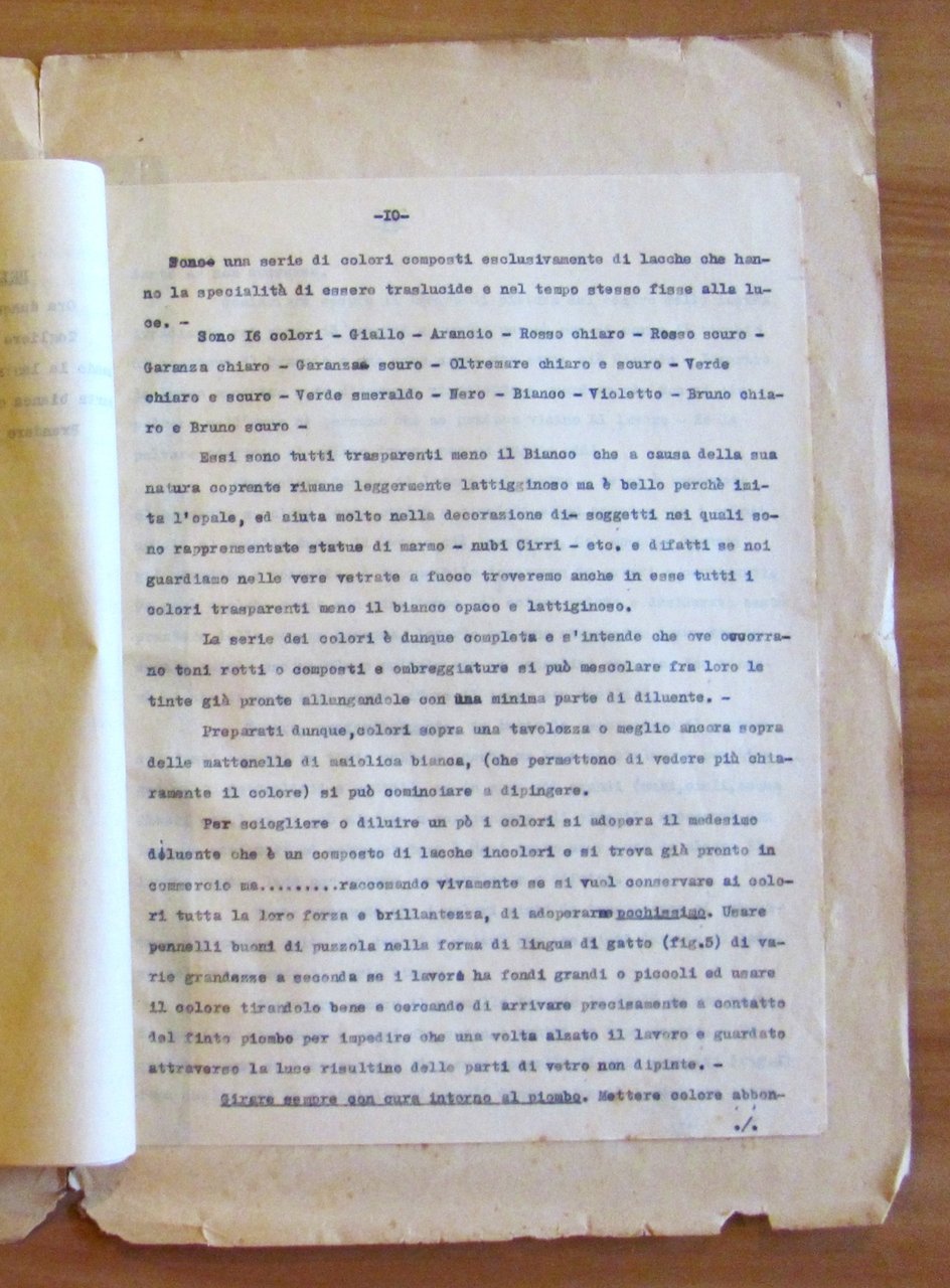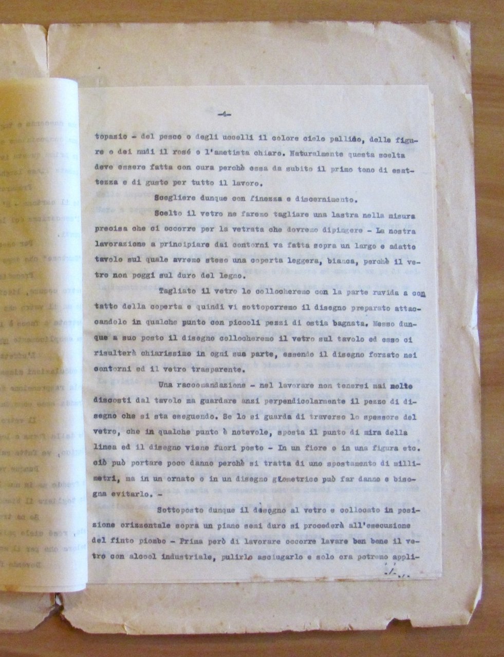 METODO PRATICO per l'esecuzione di VETRATE ATISTICHE, anni 20 - Raro dattiloscritto mai pubblicato