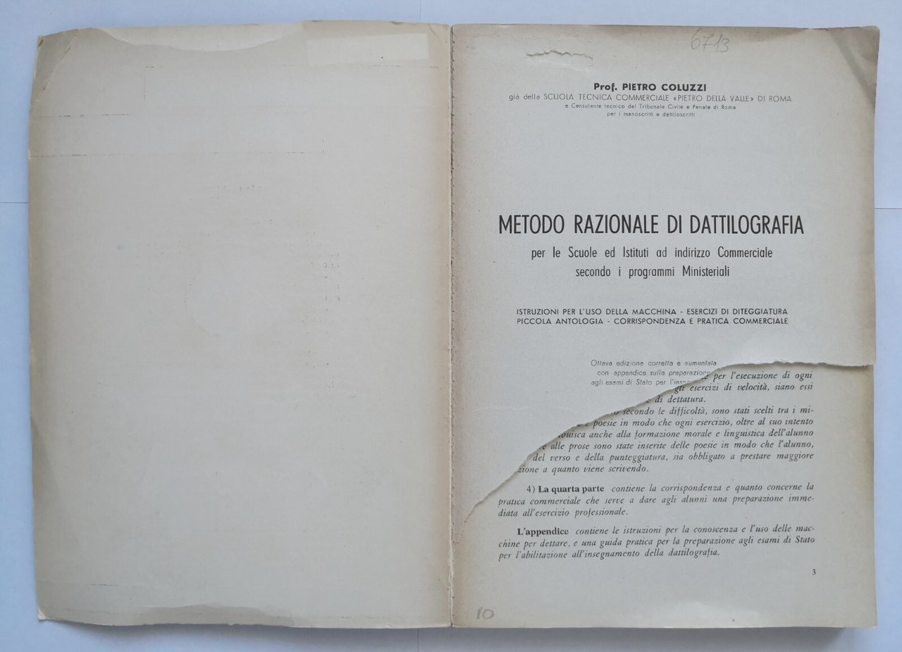 METODO RAZIONALE DI DATTILOGRAFIA di Pietro Coluzzi. Per le Scuole e gli Istituti a indirizzo commerciale.