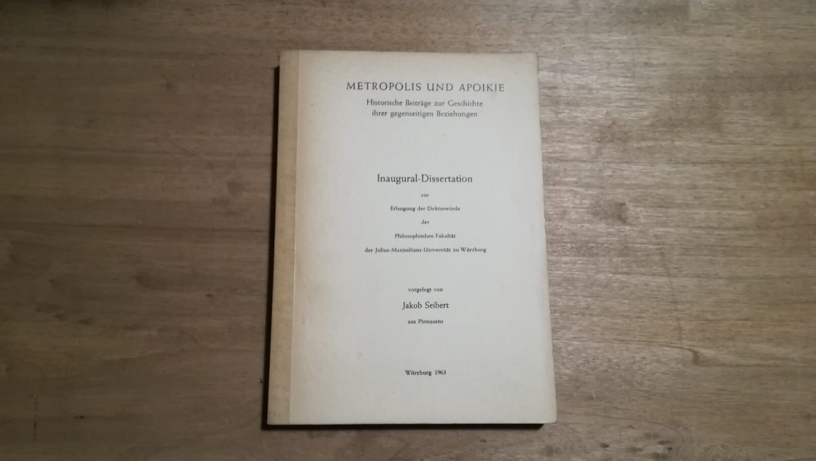Metropolis und Apoikie. Historische Beitrа¤ge zur Geschichte ihrer gegenseitigen Beziehung. Inaugural-Dissertation zur Erlangung der Doktorwајrde der Philosophischen Fakultа¤t der Julius-Maximilians-Universitа¤t zu Wајrzburg