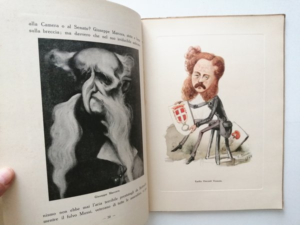 form. 27X19,5. Brossura in cartoncino con copertina piegata e Titoli in oro a sbalzo pagine 86. Con 136 caricature e 5 tavole fuori testo. Bella copia