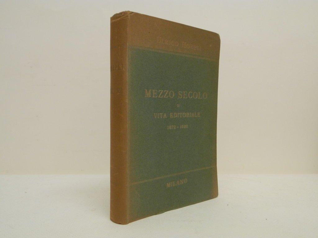 8^, mm 235x165, pp. LXXI, 404, (6), cartoncino editoriale verde titolata in oro, buono stato di conservazione, ingiallitura da polvere al dorso e ai margini superiori della copertina, ex libris applicato al contropiatto, interno perfettamente conservato. Prima edizione del catalogo cronologico e alfabetico, per autori e per materie, delle edizioni Hoepli (1872-1922), con introduzione di Michele Scherrillo.. *** TUTTI I NOSTRI LIBRI SONO VISIBILI PREVIO CONTATTO MAIL O TELEFONO NELLA NUOVA SEDE DI MILANO: LIBRERIA COSMOPOLIS, VIA JOMMELLI, 22. ***