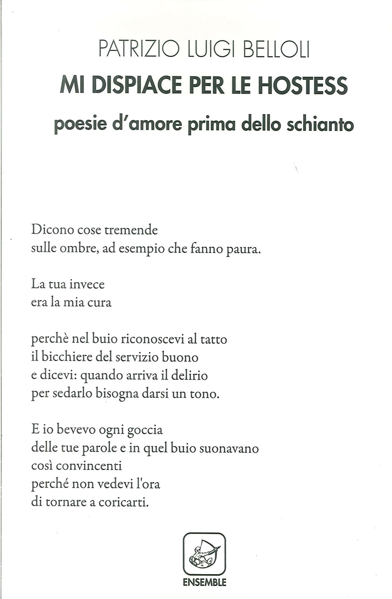 Mi Dispiace per le Hostess. Poesie d'amore prima dello schianto, Roma, Edizioni Ensemble, 2018