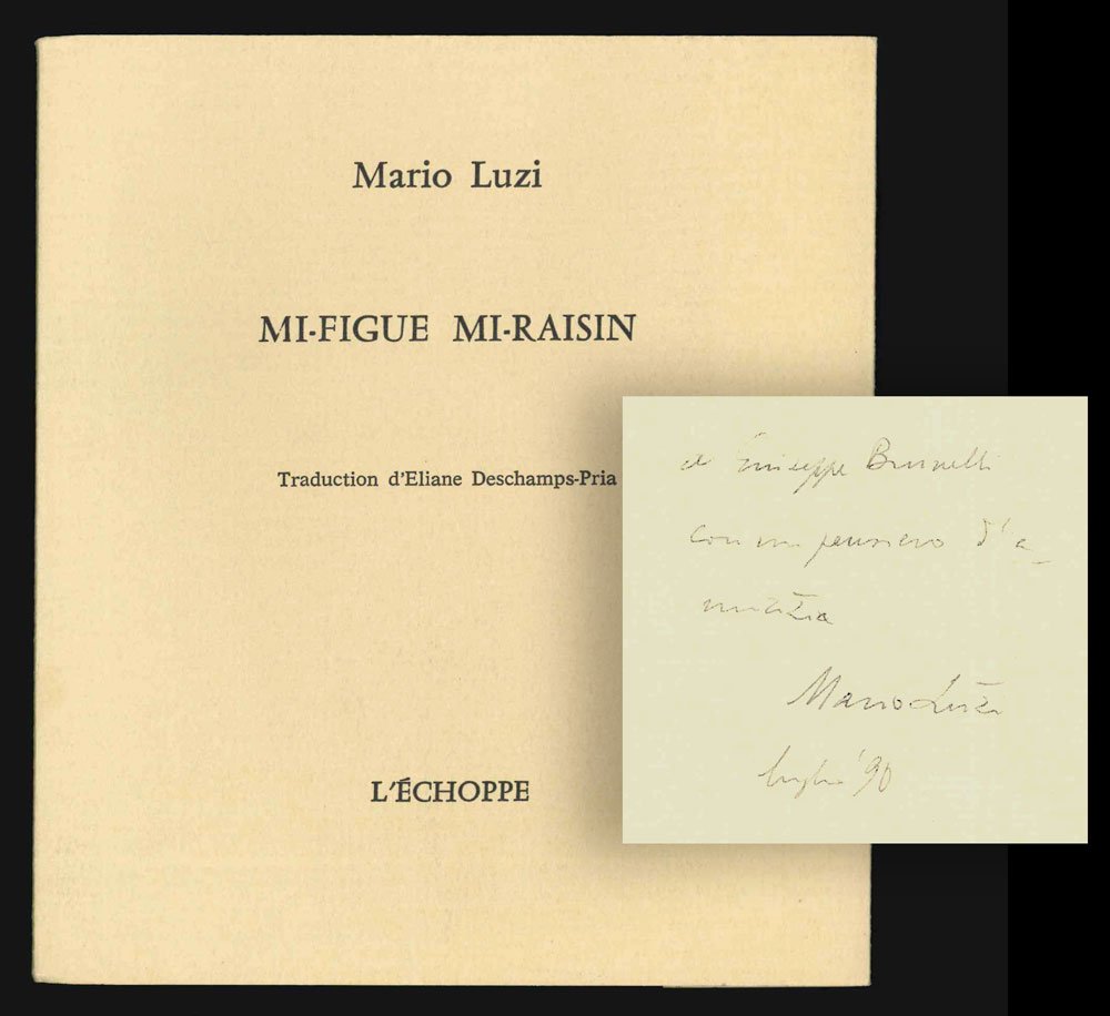LIBROPrima edizione in francese.CON AUTOGRAFO.Ottimo esemplare pregiato da dedica autografa dell’autore (datata «luglio ’90»), vergata al piatto anteriore della brossura muta.Traduce la suite «Semiserie», pubblicata per la prima volta nel 1979 presso la galleria ‘Il Catalogo’ di Salerno.