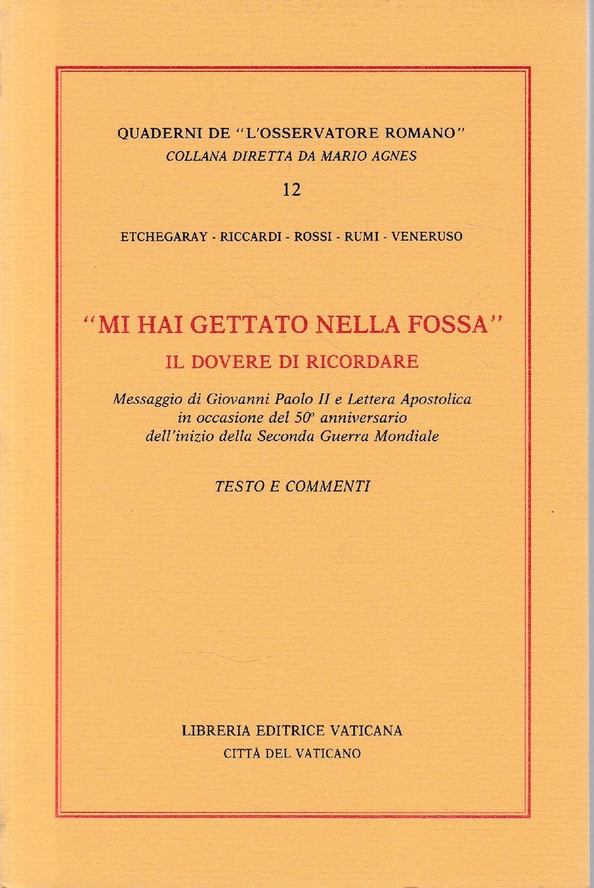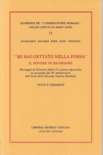 Mi hai gettato nella fossa : il dovere di ricordare : messaggio di Giovanni Paolo 2. e lettera apostolica in occasione del 50. annniversario dell'inizio della Seconda Guerra mondiale