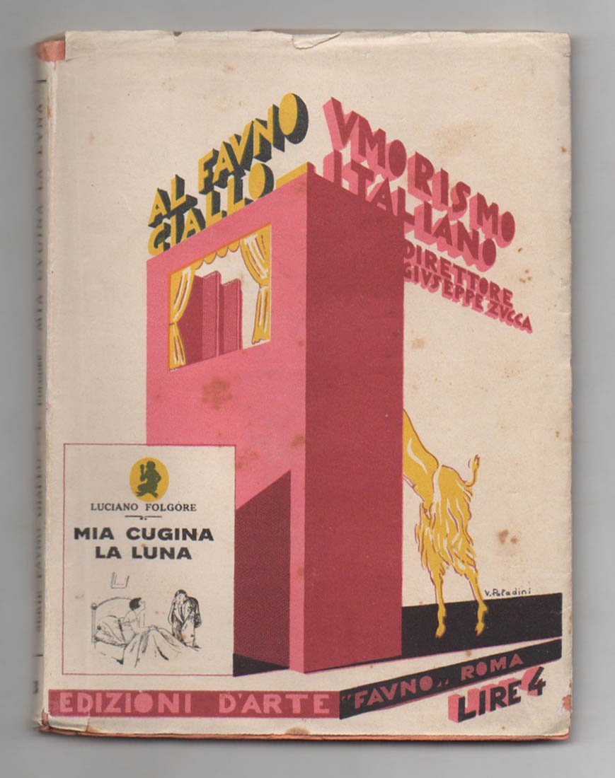 LIBROEdizione originale. Ottimo esemplare (piccole mancanze alla testa e al piede della sovracoperta, interno pulito).Raccolta di racconti. «L’Eden della tartaruga» di Bontempelli riporta una pubblicità di quest’opera sulla sovracoperta, dove dice che qui Folgore «tiene fede alla sua definizione intorno all’umorismo, che è per lui «l’arte di rovesciare all’improvviso l’abito dell’apparenza per mettere in luce la fodera della verità»».Cammarota, Futurismo, 208.12