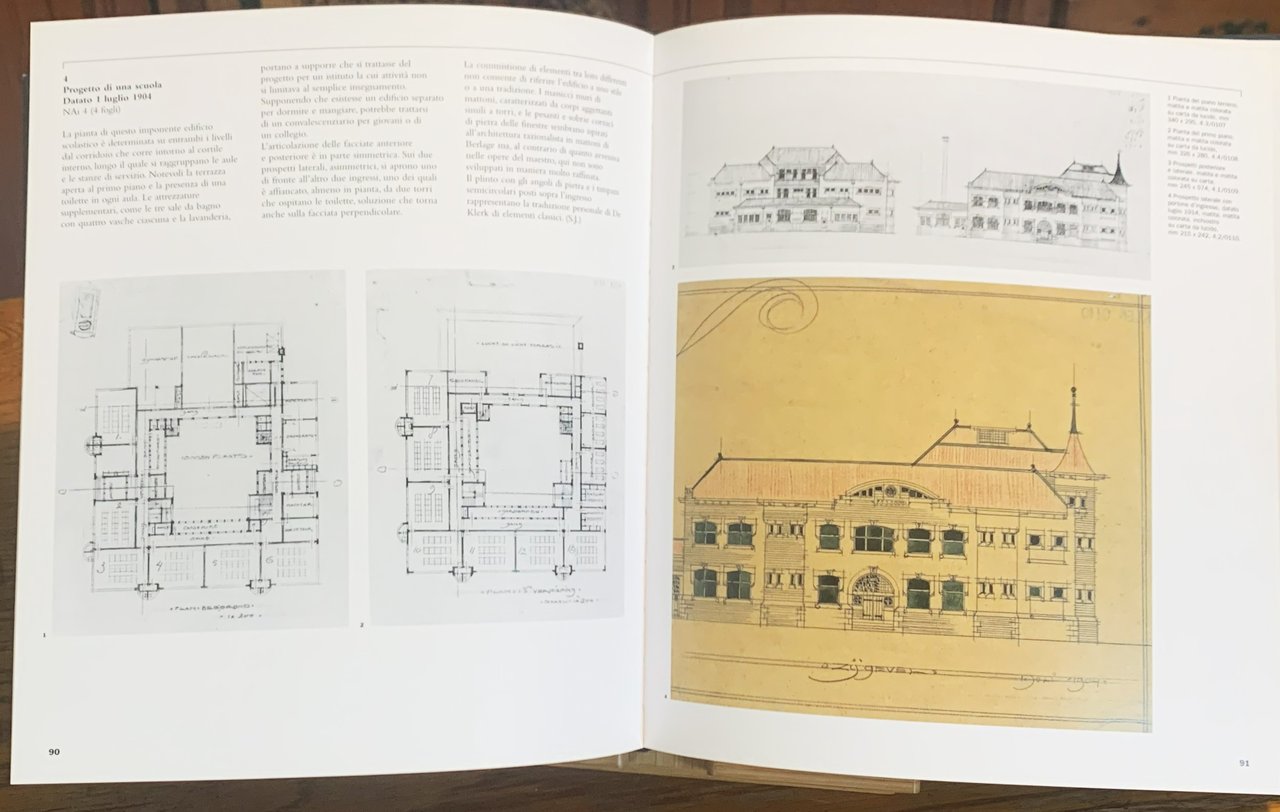 I ed. italiana (I ed. originale in lingua inglese: Rotterdam, NAI Publishers - I ed. originale in lingua olandese: Rotterdam, Nai Uitgevers 1997); trad.: Federica Lehmann. Volume 18 di una collana senza nome dedicata a grandi architetti italiani e stranieri. Con un'appendice di Ingrid Oosterheerd. In-8 grande quasi quadro, pp. 308, cart., sovraccoperta illustrata a colori al primo piatto (Michel de Klerk, Progetto di un chiosco, 1919-23 ca., veduta prospettica, matita colorata su carta, mm 210x255), (Michel de Klerk, Mercato dei fiori Bloemenlust Oosteinderweg 247, Aalsmeer-Oosteinde, 1920-22, veduta prospettica della facciata anteriore, gessetto e acquerello su carta, mm 580x980). Stato buono (leggero stato d'uso del cofanetto). Sommario: Gli archivi di Michel de Klerk; Manfred Bock (docente di Storia dell'architettura all'Università di Amsterdam), Mariet Willinge (direttore del Dipartimento collezioni Nai) - La Scuola di Amsterdam e l'architettura di Michel de Klerk; Manfred Bock - Unità, movimento e spazio; Sigrid Johannisse - I complessi residenziali di De Klerk; Vladimir Stissi - 1898-1911 (Formazione, viaggi e concorsi; Sigrid Johannisse) - 1911-1917 (I primi anni di attività autonoma; Vladimir Stissi) - 1917-1919 (Anni di crisi, rivoluzione e riflessione; Vladimir Stissi) - 1920-1923 (Architettura arte spaziale; Sigrid Johannisse, Vladimir Stissi) - Appendice (Mobili e arredi; Ingrid Oosterheerd) - Riferimenti bibliografici.